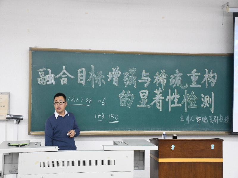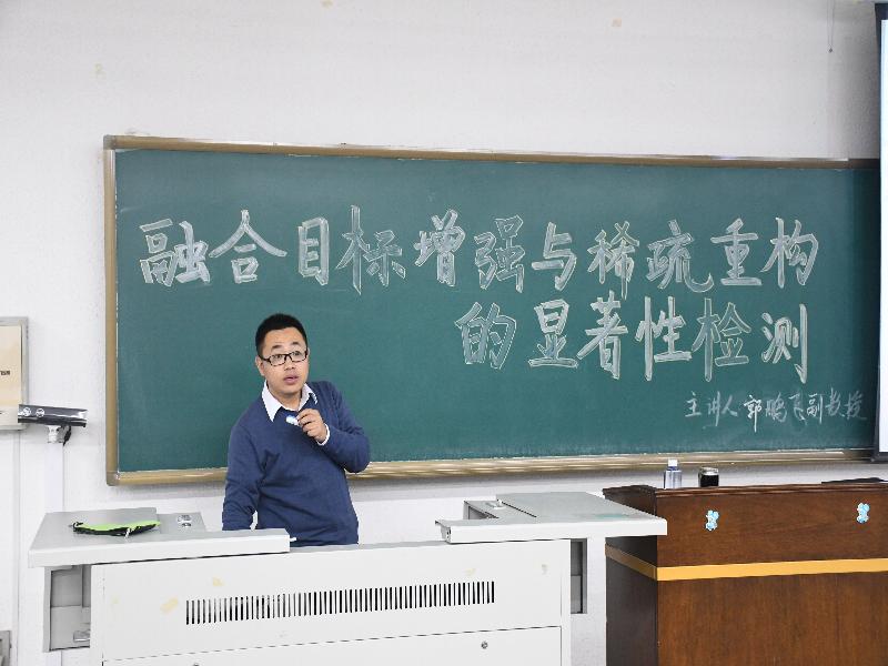 首先,郭教授进行了简单的自我介绍,并以图像显著性检测中存在的边界模糊、检测准确度不够等问题作为背景,引出本次讲座的主题——“融合目标增强与稀疏重构的显著性检测”,接着,郭教授讲解了如何进行的快速目标检测和解决现存在的问题的方法,并简单地介绍了解决现存问题的算法。在讲授的过程中,郭教授用自己的学习历程激励学生们学习,鼓励学生们热爱专业,考研深造。
