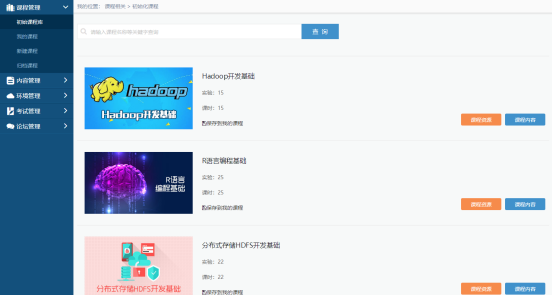 三个实验平台均基于云架构技术建设,在我校两地三校园形成真正意义上的三片教学私有云,构成全校的实验教学“云团”。该实验教学“云团”提供了大数据技术、人工智能及网络工程等方面几十门课程实验资源支撑。“云团”具有明显的优势:全校师生可在校园任何能接入校园网的地方,使用任何终端设备完成相关实验、测试仿真和视频学习;教师可以根据已有的资源重组资源或新建资源;可辐射全校师生,根据安排合理使用资源;可累积、完善、评估教学资源成果,促进教学质量的提高与成果共享;可在线完成实验教学任务、知识学习、报告提交、在线评价、师生互动、报表生成全过程等。