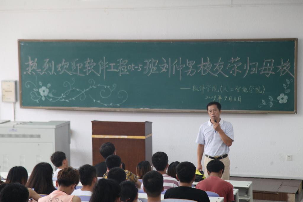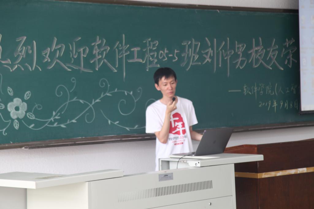 报告会上,校友刘仲男首先表达了自己的感慨,十年时光,母校变化极大,从图书馆到花草树木,每一处都彰显了母校这十年的繁荣发展,回忆母校时光,往事历历在目,校友刘仲男说,他当时的大学生活,有很长时间沉迷游戏,一直以来是任自然老师坚持不懈、不厌其烦的约束、开导、帮助他,刘仲男校友为我们讲述了他毕业之后的经历,从大学考研失利独自背起行囊北漂,到现在成长为行业翘楚,优酷、快手等核心版本主要代码为其开发,年薪百万以上,在工作之余成功考取北航硕士研究生,学习项目管理方面知识。在管理工作中,刘仲男校友说运用到了心理学、无为而治等理念和智慧,仔细想想这也是当年任老师教导自己的方式,