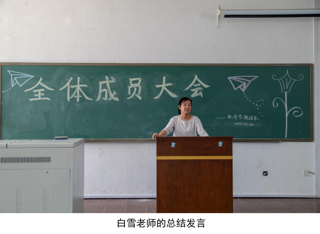 大会最后,白雪老师总结发言,首先对新成员的加入表示了欢迎,随后对团委新老成员提出了希望和要求,希望各部门的部长要以身作则,为萌新们做出表率,同时也要在生活、学习和工作中,耐心的帮助他们,让萌新们能尽早的适应团干部的角色,早日成为一个合格的学生及一名优秀的共青团干部。也希望萌新们能不忘初心,牢记使命,在未来的工作和学习中,能够虚心的向部长们请教,努力完成组织分配的工作。