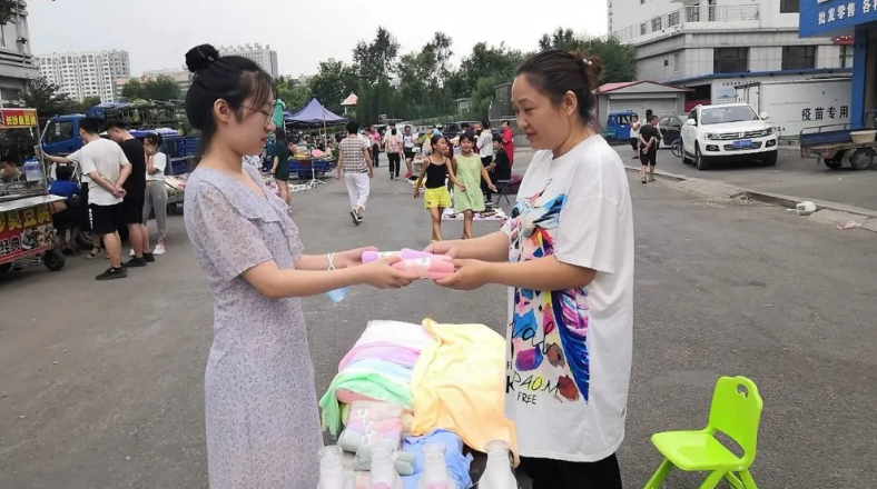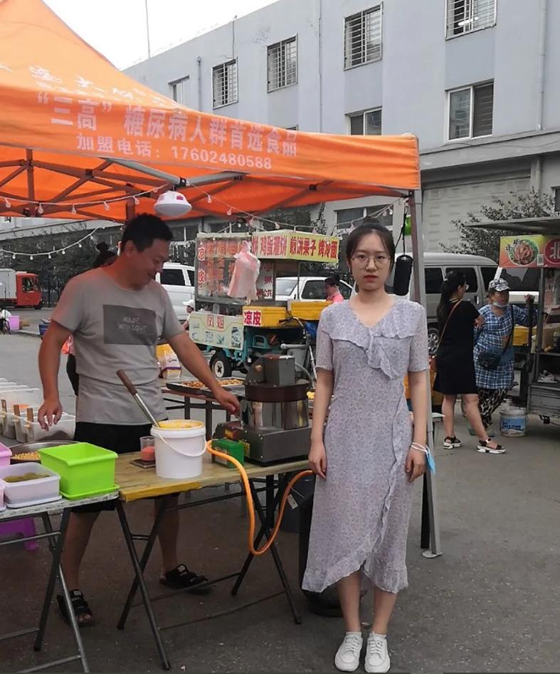 18级16班的何金妮同学和其他的三名同学组成一个小组,针对“地摊经济”展开了线下调研。