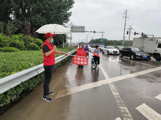 在2020年暑期社会实践活动中,网络19-5班陈磊在共青团定州市委、定州市创城办、定州市文明办共同领导下,在定州市主要交通路口,开展文明交通劝导,让定州市民文明出行。作为一名大学生志愿者的他,始终坚持按时到岗,不惧酷暑、尽职尽责,每天早晚高峰期协助交警对闯红灯、横穿马路、不走斑马线等不文明行为进行劝导,即使汗水湿透了衣服,仍然坚守在岗位。这种无私奉献,不求回报的志愿者精神令我感触良多。