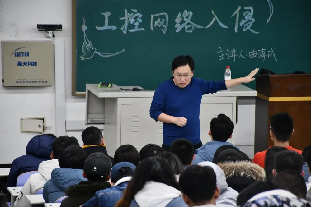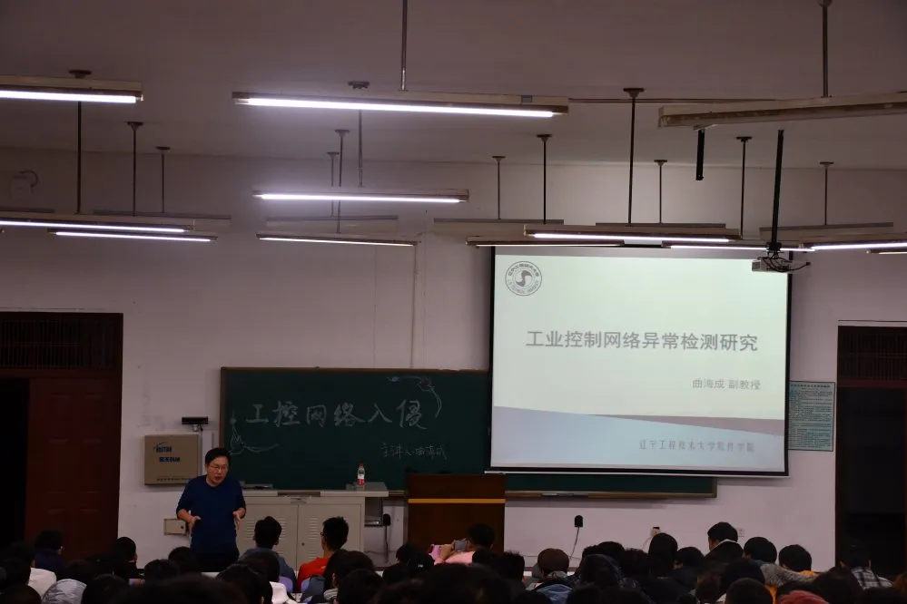 曲老师首先做了简单的自我介绍,然后通过生活中的实例引出本次主题,围绕着网络通信、网络智能化管理、网络信息安全展开了细致的讲解,分析了工控网络安全面临的问题和发展前景,为同学们介绍了工业控制流程的运作方式与工作模式,随后讲述了计算机技术在网络安全方面的应用及如何检测异常数据包等技术并对检测异常的手段进行分类,提出工程网络安全的体系相关内容,最后曲老师向大家展示了相关的科研成果,并表达了对同学们的鼓励和对未来网络的期待。