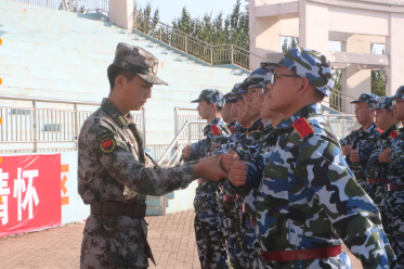 从前摇摇晃晃的齐步走如今也渐渐沉稳有力,而教官们的声音却从洪亮变为沙哑。穿梭在一排排浅色迷彩中,教官们为新生整理服装,指导动作。