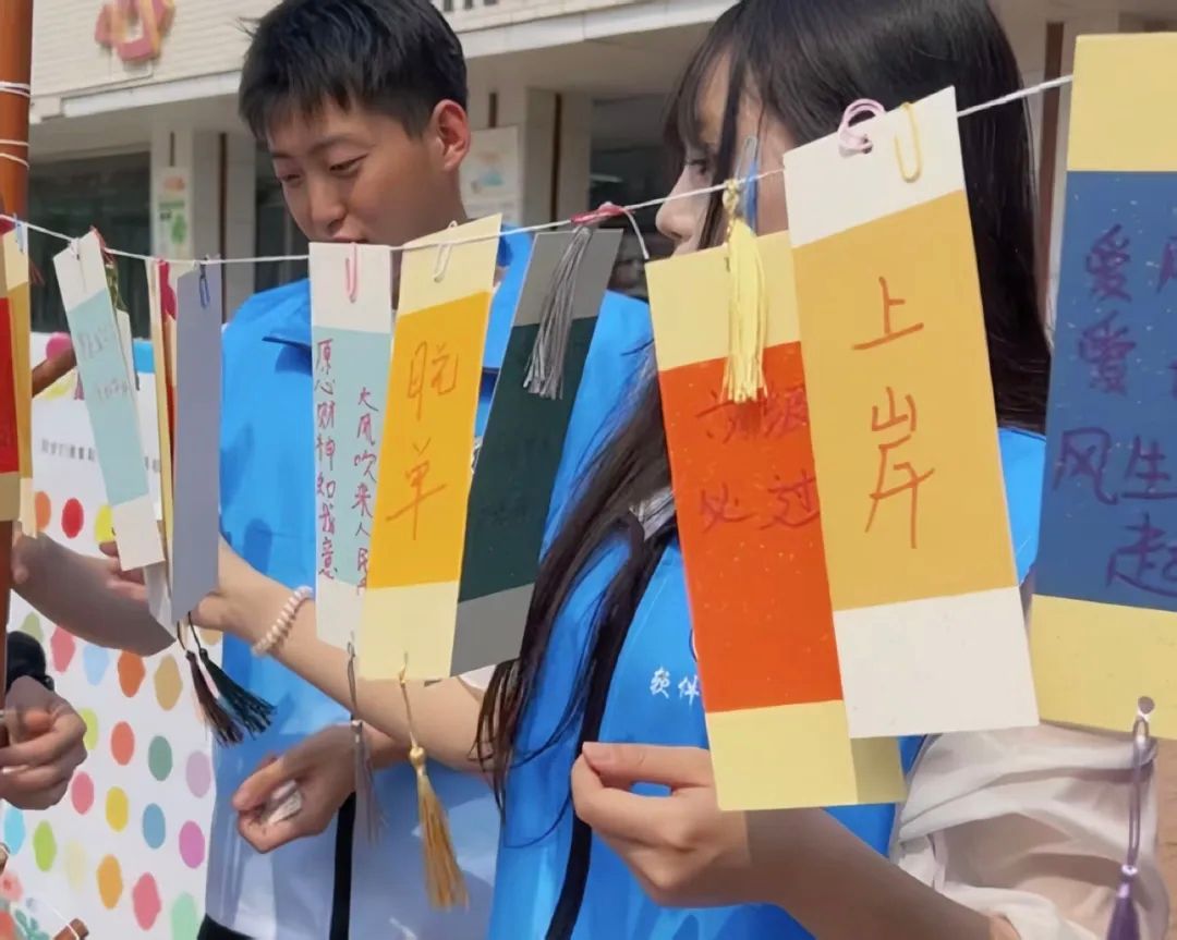 最终,集齐三张贴纸的同学在领奖处领取奖品,奖品设有鲜花、糖果以及非遗漆扇制作。在漆扇制作时,同学们在色彩渐变中寻找平衡,更像是调节情绪的过程。同学们不仅亲手创造出独一无二的艺术扇面,更在非遗技艺的浸润中,完成了一次与内心的深度和解,让情绪在色彩的流动间悄然找到温柔的支点。