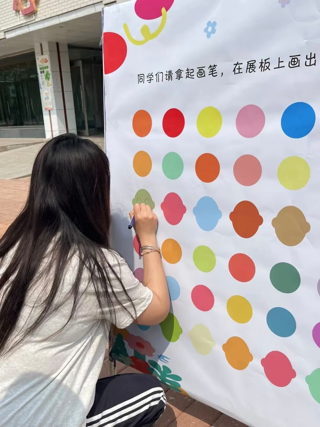 活动现场共设有六项心理健康团辅游戏,参与学生每完成一项后即可获得贴纸一张,累计三张贴纸即可领取活动奖品。活动项目有“瓶子里的春天、我有一个愿望、合作聚给力”等。对于投身其中的学生而言,这不仅仅是一场团队建设活动,更是一场个人心灵的治愈之旅。同学们在艺术创作中找寻内心的平静,在默契配合中感受协作的力量。那些平日里的紧张与压力渐渐消融,取而代之的是真诚的欢笑和温暖的联结。