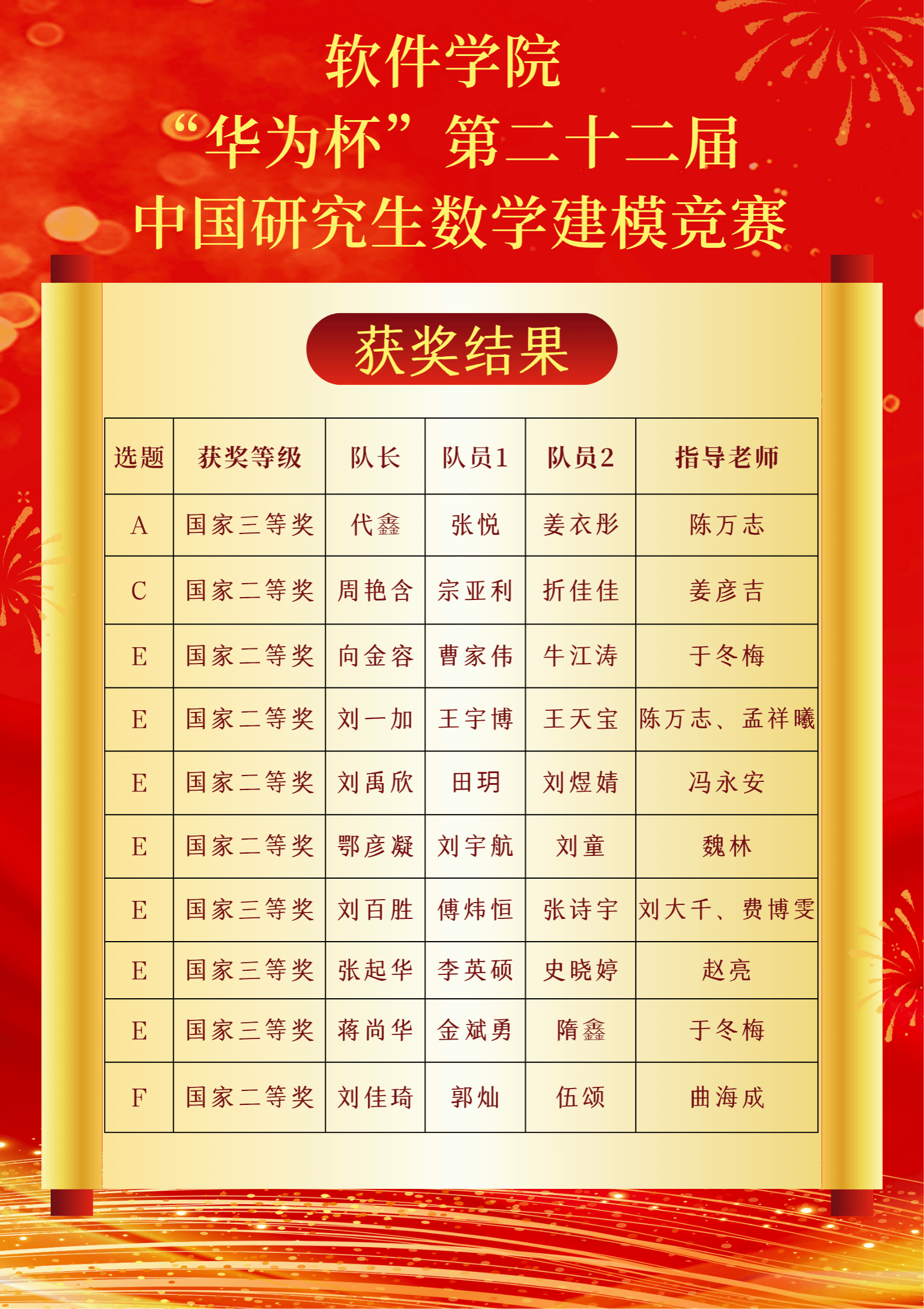 研究生团队在本届赛事中成果颇丰,一举斩获国家级二等奖6项、国家级三等奖4项的优异成绩。参赛同学们在激烈的竞争中脱颖而出,为博彩游戏