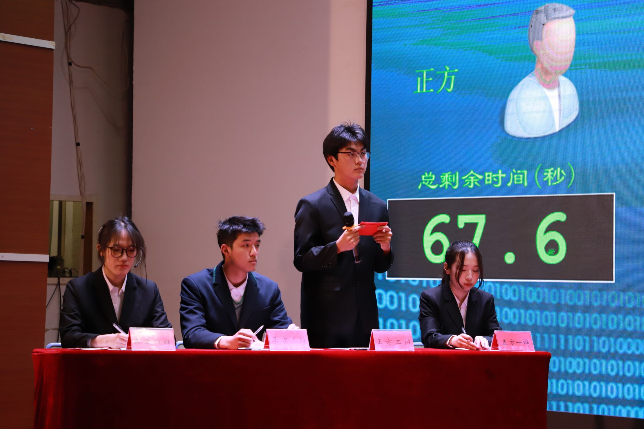 团委书记张娇娇老师、学生第一党支部书记李越老师、社联主席团成员及往届辩论赛优秀辩手应邀担任评委,共有4支队伍参与角逐。