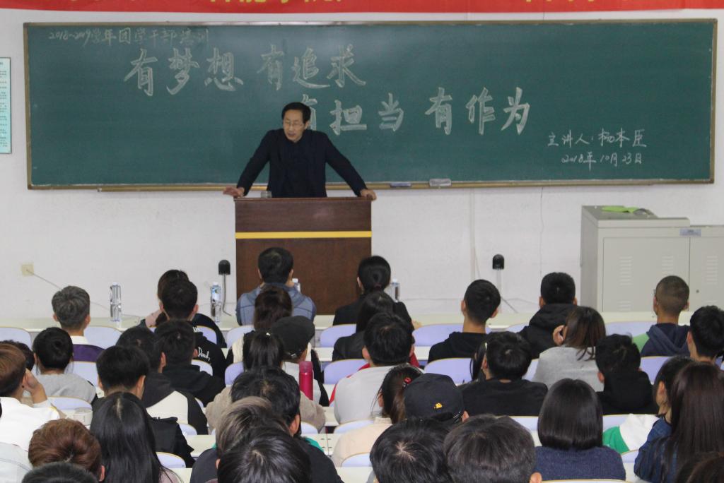 2018-2019学年团学干部培训于尔雅楼107室如期举行。院党委副书记杨本臣以“有梦想,有追求,有担当,有作为”为题进行讲授。莅临本次培训的有热门博彩游戏推荐排行
