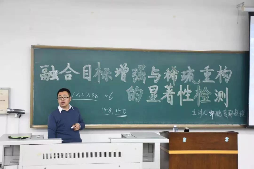首先,郭教授进行了简单的自我介绍,并以图像显著性检测中存在的边界模糊、检测准确度不够等问题作为背景,引出本次讲座的主题——“融合目标增强与稀疏重构的显著性检测”,接着,郭教授讲解了如何进行的快速目标检测和解决现存在的问题的方法,并简单地介绍了解决现存问题的算法。在讲授的过程中,郭教授用自己的学习历程激励学生们学习,鼓励学生们热爱专业,考研深造。
