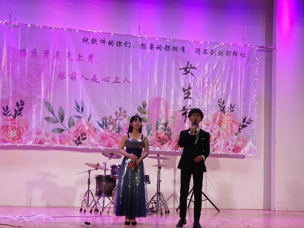 活动一开始便进入了良好的状态,为了让女生能更好地享受这次活动,活动组织者为在场的每个女生都准备了美丽的花环。活动精心准备了数个精彩节目与趣味小游戏,有四人的男女对唱《小幸运》;有激情洋溢的摇滚歌曲与舞蹈串烧;也有令人捧腹大笑的相声与睡衣舞;更有充满乐趣的游戏:多手多脚,踩报猜歌迷等,而最令人期待的影子舞台剧更是将现场浪漫、温馨的氛围推向了高潮。活动期间在场的每一个软件学子都积极参与其中,其乐融融。每个女生都在女生节这个属于自己的节日里,留下了甜蜜的回忆,收获了最美好的体验。