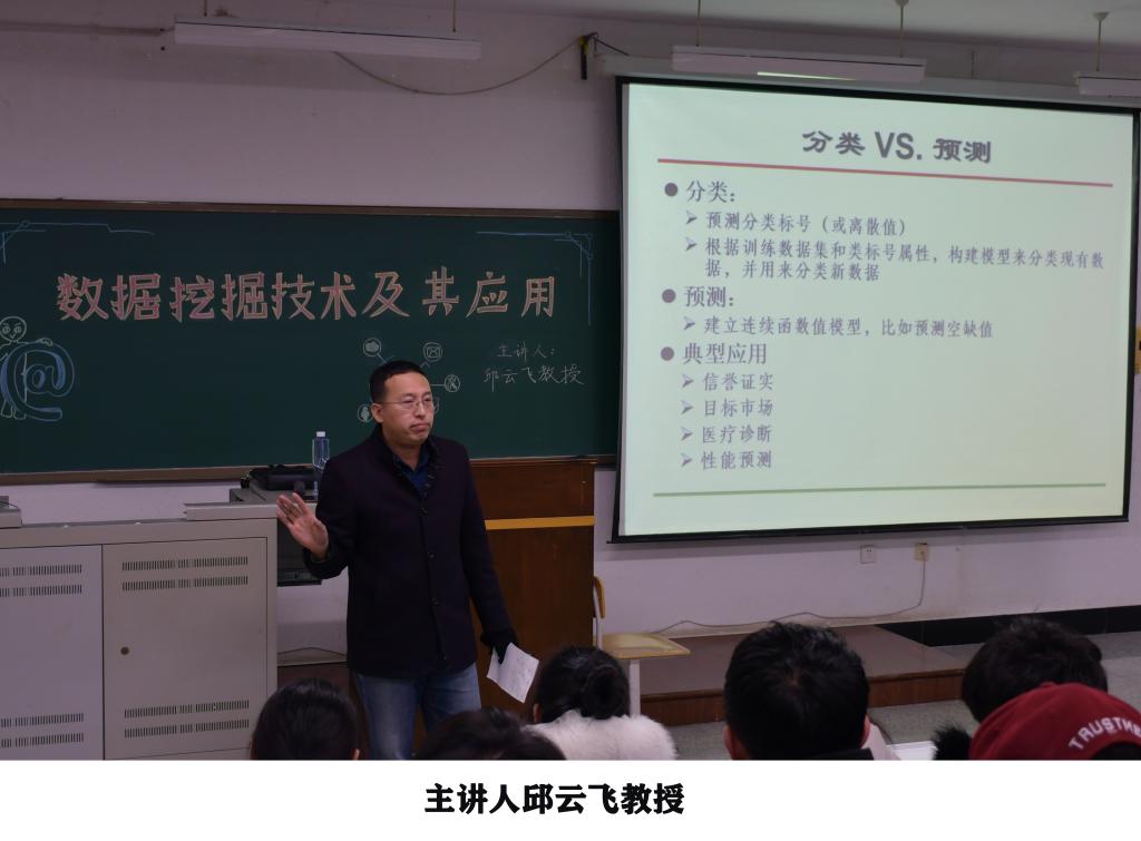 邱云飞教授的讲座生动形象,诙谐幽默,通过他的讲解,同学们对数据挖掘技术和应用都产生了极大的兴趣。最后,本次讲座在同学们热烈的掌声中圆满结束