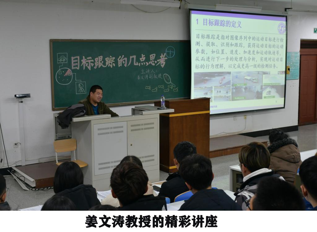 讲座伊始,姜老师用简短的话语对目标跟踪进行了描述,提出了目标跟踪就是计算机对运动目标的检测、提取、识别和跟踪,使计算机具有人的视觉系统的概念。紧接着姜老师列举了目标跟踪在智能交通、安防监控、人机交互和军事目标分析等领域的应用,对国内外在目标分析领域的研究现状进行了分析。最后姜老师介绍了目前国内外在目标分析技术领域的困扰,希望同学们要“自力更生,艰苦奋斗”,争取早日在目标分析领域做出新突破。