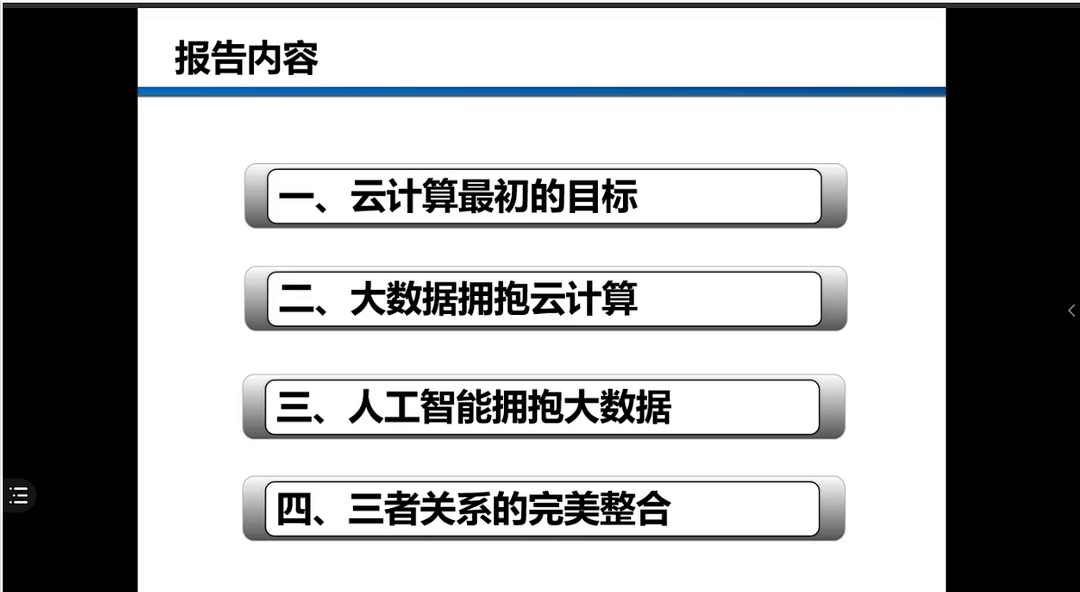 沈教授从云计算最初的目标开始说起,初步介绍云计算的构成与用处以及云计算的目标—对资源的管理,进一步讲解到大数据在云计算中的运用、人工智能与大数据的结合,最后讲到三者的关系,细致入微,举例丰富,让大家对云计算、大数据、人工智能三者的关系有了清晰的了解,沈教授还结合了实际场所为大家举例了三者结合的灵活运用。