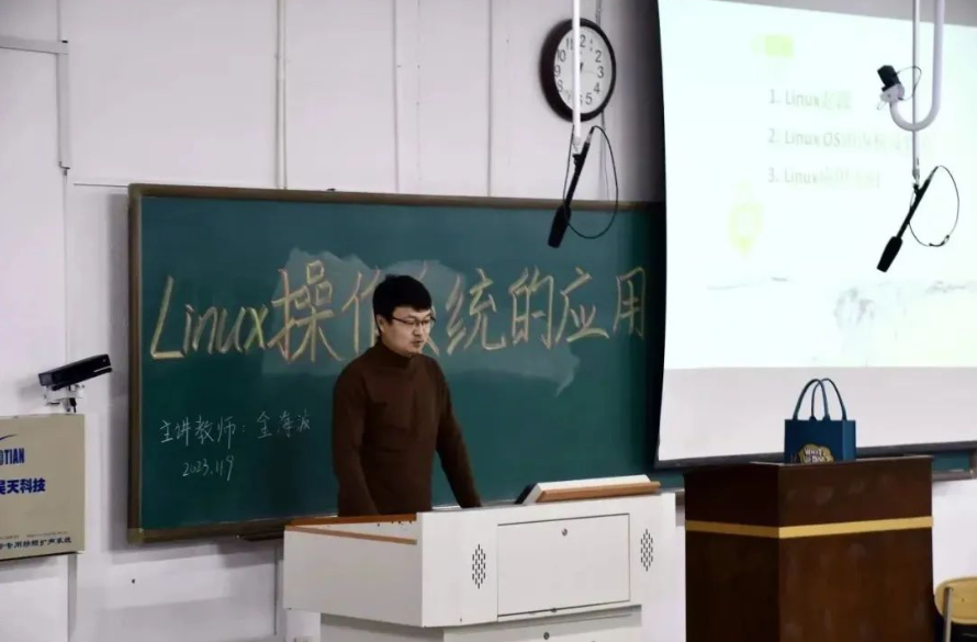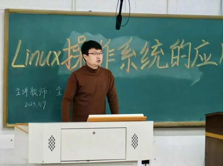金海波副教授首先从Linux发展的时间线出发,介绍了Linux的起源。接着,金老师运用实例引出Linux操作系统的核心—内核,并简述了它的四个主要作用。不仅如此,金老师还从计算科学与Web服务器、数据库服务器的搭建、嵌入式开发三个层面讲述了Linux的应用方向,列举了各个层面对应的应用场景。最后,展望了Linux技术的发展前景,并鼓励大家继续努力学习和探索Linux,追逐技术的潮流,并将其运用到专业学习和研究中。