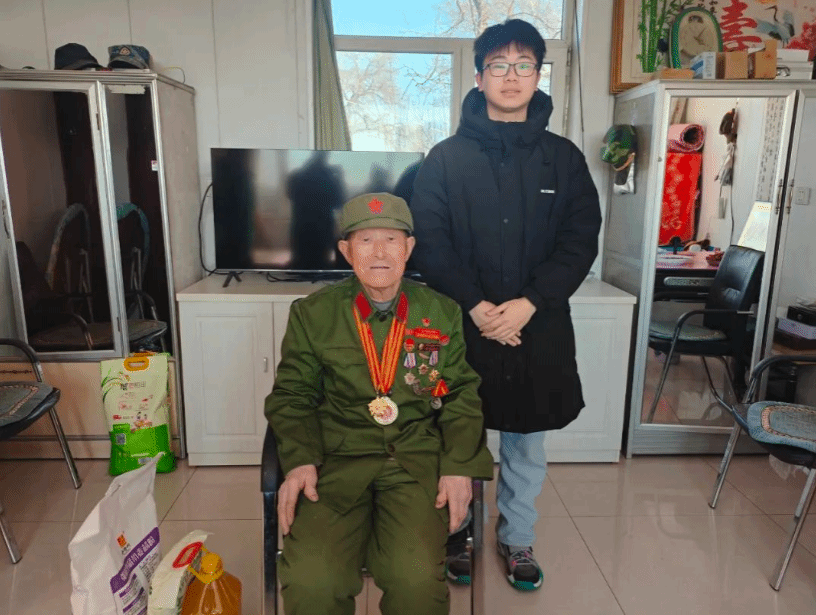 第二户慰问的是曾参加过抗美援越战争的退伍军人。在交谈的过程中,他向我们介绍了参加战争的艰苦过程以及自己获得的荣誉勋章,并告诉我们将新时代的使命寄托在我们这些青年人身上。临走时前辈热泪盈眶地说:“我舍不得咱们这些当兵的人,看见年轻的你们就想起了年轻的自己,你们一定要好好努力为咱们祖国做出更大的贡献!”作为志愿者的我们定会牢记,当今的盛世是老一辈共产党员用鲜血换来的,我们定会珍惜前辈的奋斗成果,并牢记时代使命,将这份宝贵的革命精神传承下去。
