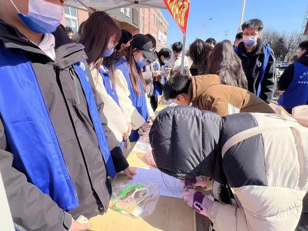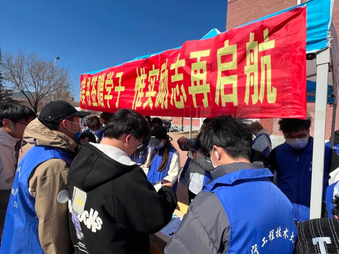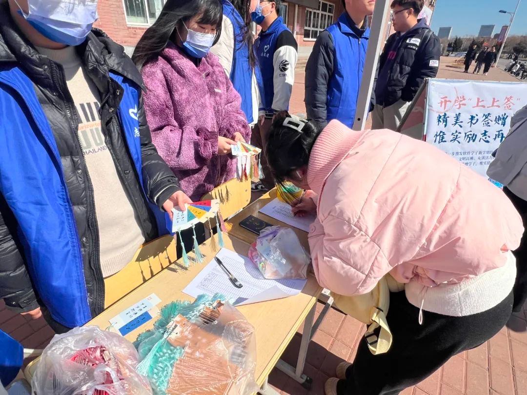 在一食堂前开展了“精美书签赠学子,惟实励志再启航”主题活动。