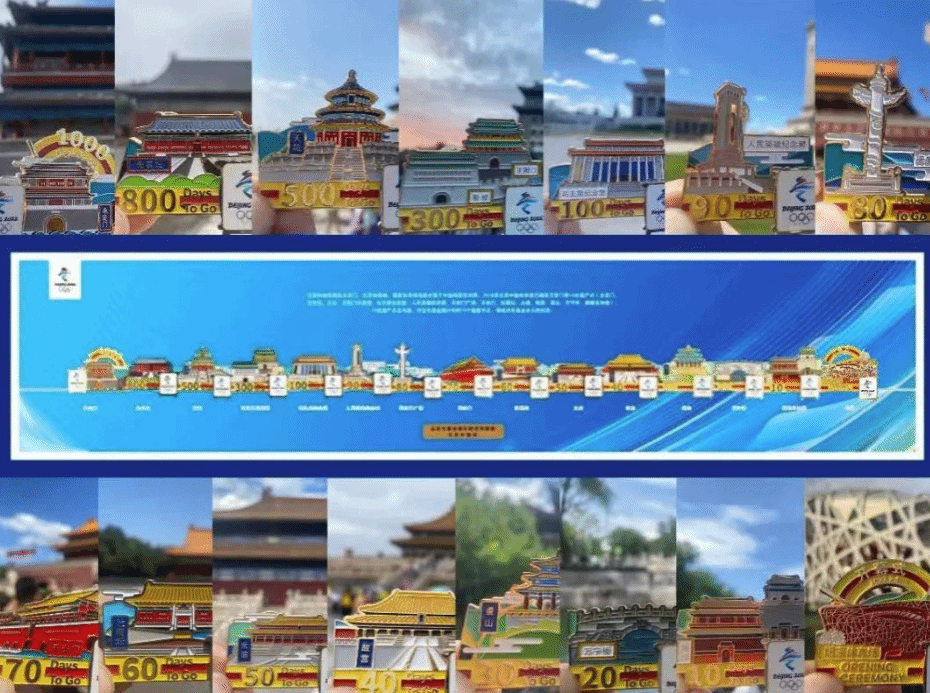 最后带大家欣赏一下我历时两年时间完成的(从收集第一枚徽章到完成所有照片拍摄、加工)《北京中轴线建筑&北京冬奥会限定徽章合拍图集》。从南到北依次是:永定门、先农坛、天坛、箭楼、正阳门、毛主席纪念堂、人民英雄纪念碑、天安门广场、天安门、社稷坛、太庙、故宫、景山、万宁桥、鼓楼、钟楼、国家体育场。