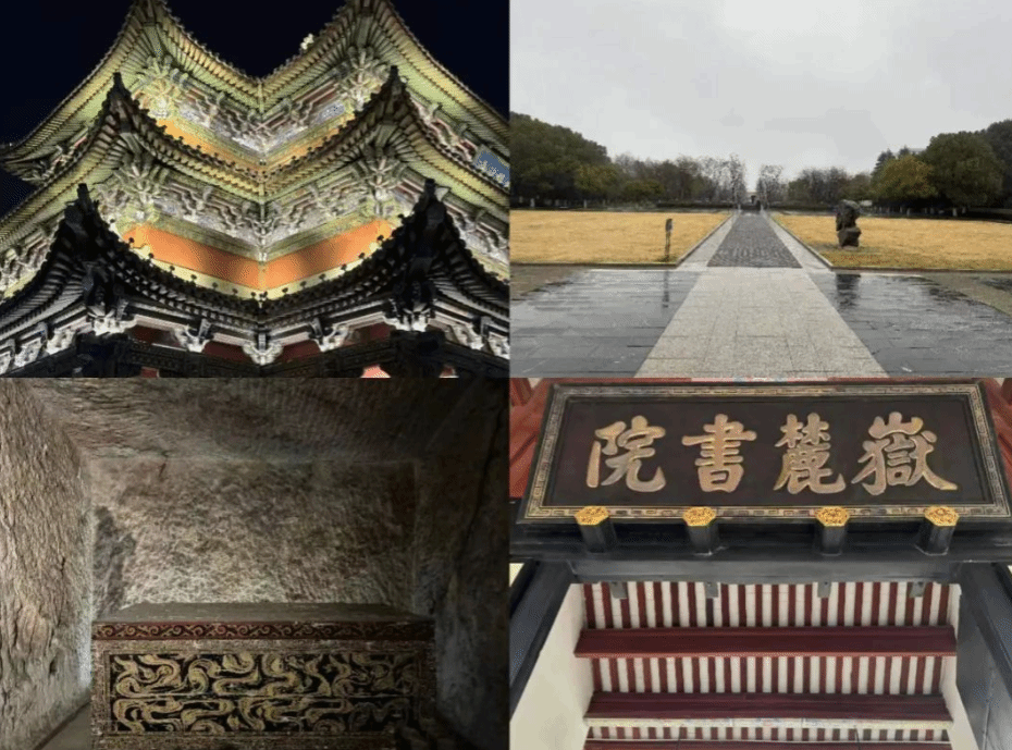 →长沙:岳麓书院、爱晚亭、湖南大学红楼、湖南烈士公园