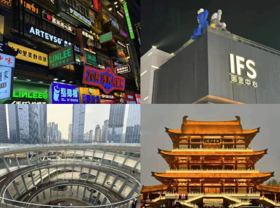 →长沙:杜甫江阁(仿建)、梅溪湖、国金中心、黄兴街、太平老街、橘子洲头