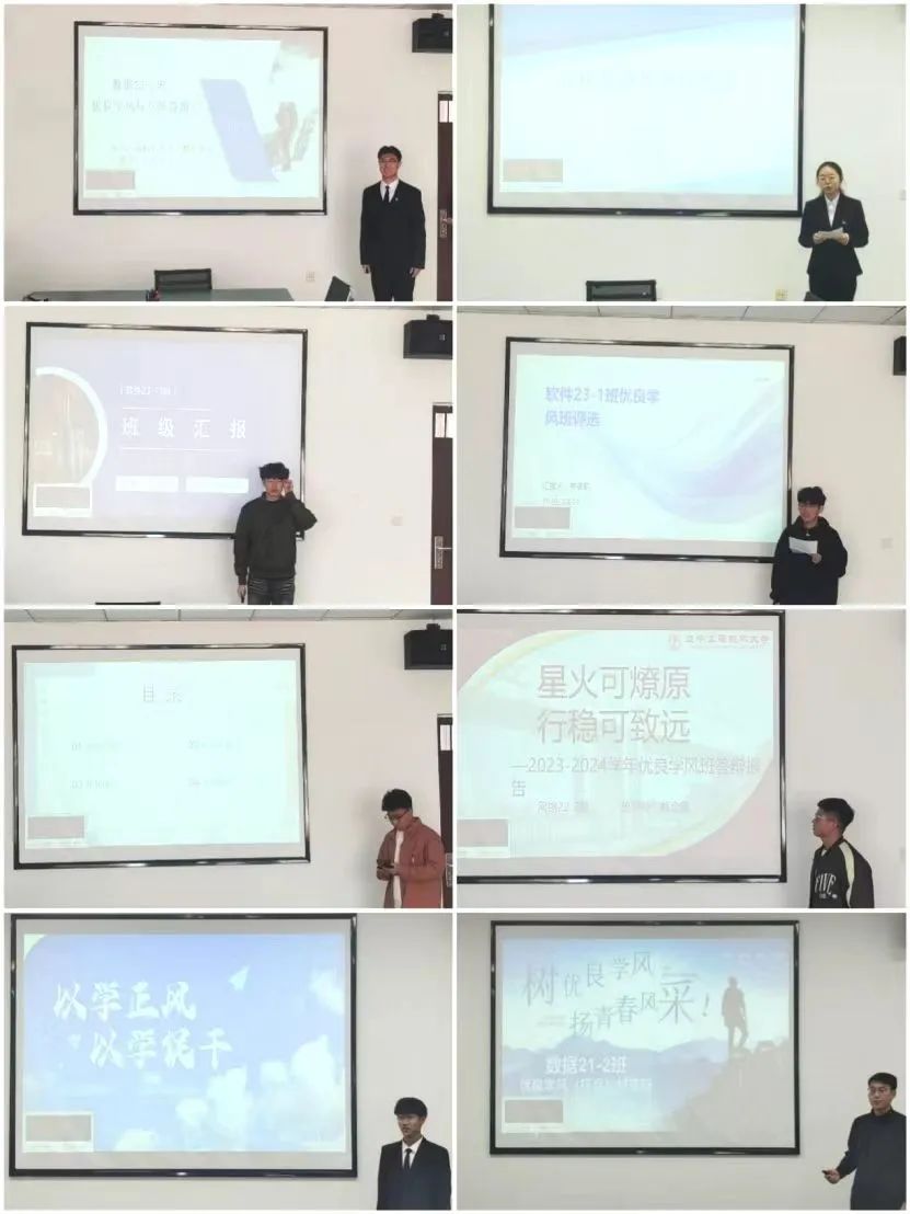 21至23级各班负责人依次为我们展现班级基础信息、学风建设举措、班级综合素质培育方略、班级活动,以及未来班级学风建设等多维度内容。深刻诠释优良学风之真谛——那是对知识的尊崇敬畏,对梦想的执着坚守,对集体的认同信任,以及对未来的无限展望。