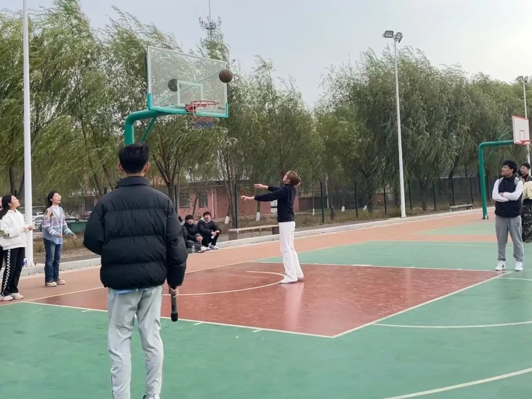 阳光洒满校园,师生篮球赛热烈开场。老师们积极参与其中,每一次站定投篮都满含热情,他们用自己的方式为比赛添彩。赛场加油声不断,师生相互鼓励,这是师生间深厚情谊的温暖见证。
