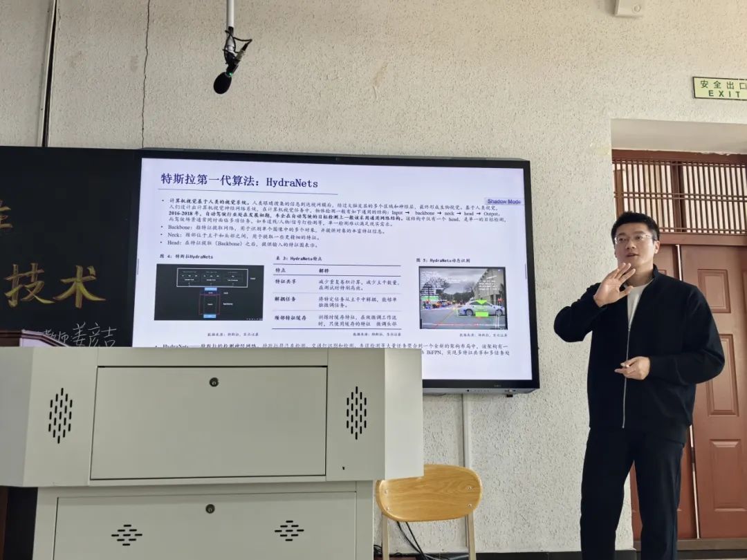 讲座中,姜彦吉老师详细阐述了智能驾驶算法在汽车自动驾驶功能中的核心地位。他提到,特斯拉作为行业先驱,其智能驾驶算法通过海量数据的深度学习与持续优化,能够精准识别路况、行人及其他车辆,从而实现高效安全的自动驾驶;华为等国内品牌在智能驾驶算法领域也崭露头角,华为凭借深厚的技术积累与创新精神,为国内智能驾驶技术的发展注入强大动力。除此之外,其他众多车企的智能驾驶技术也各有所长,可供同学们学习。