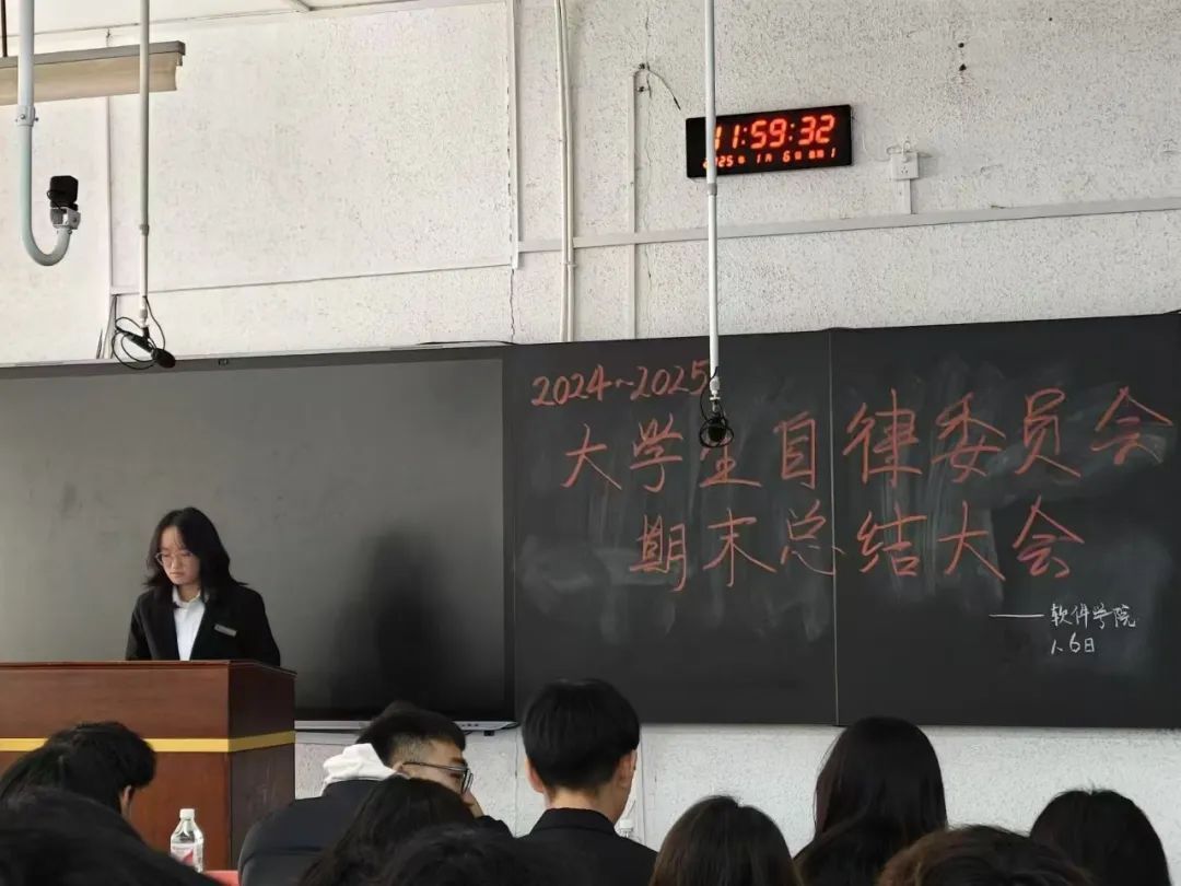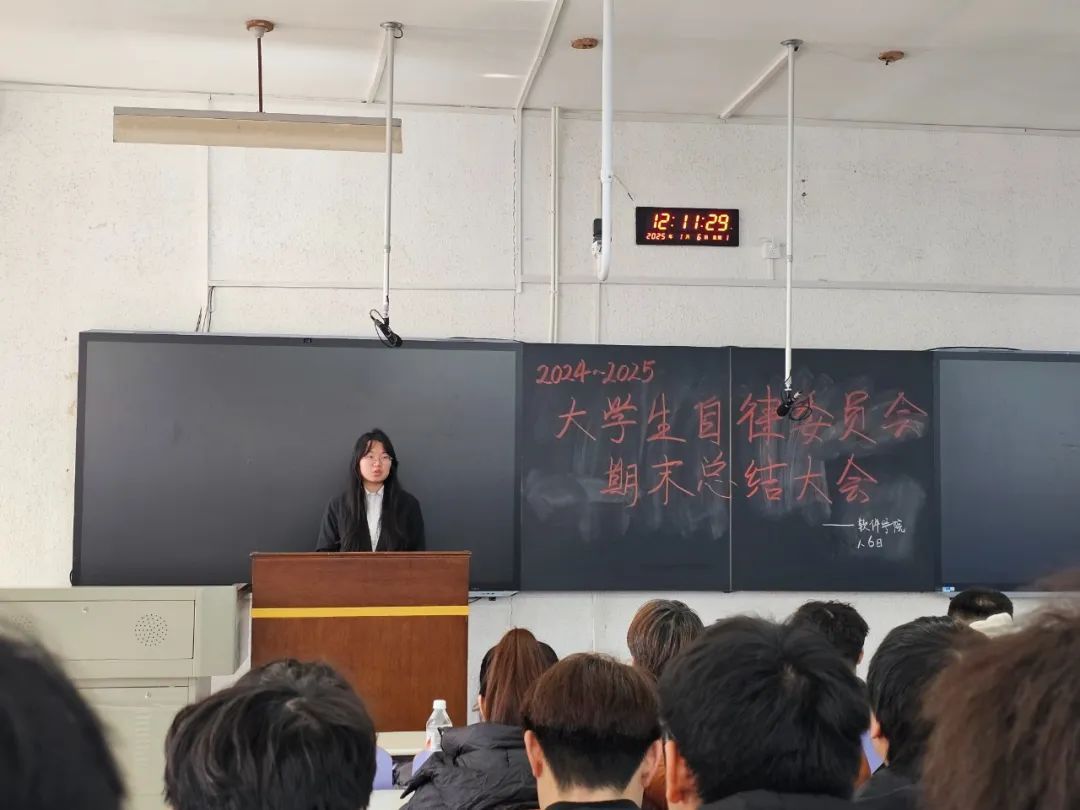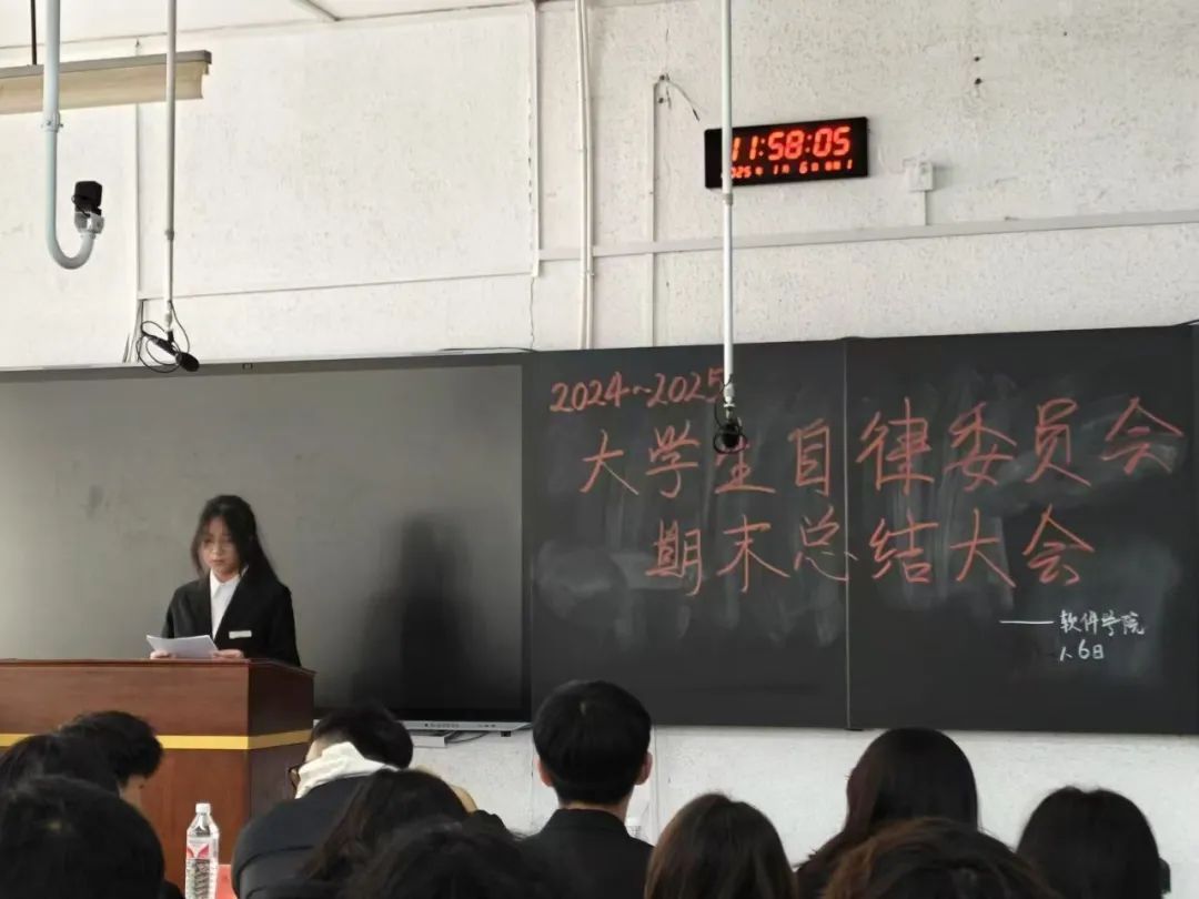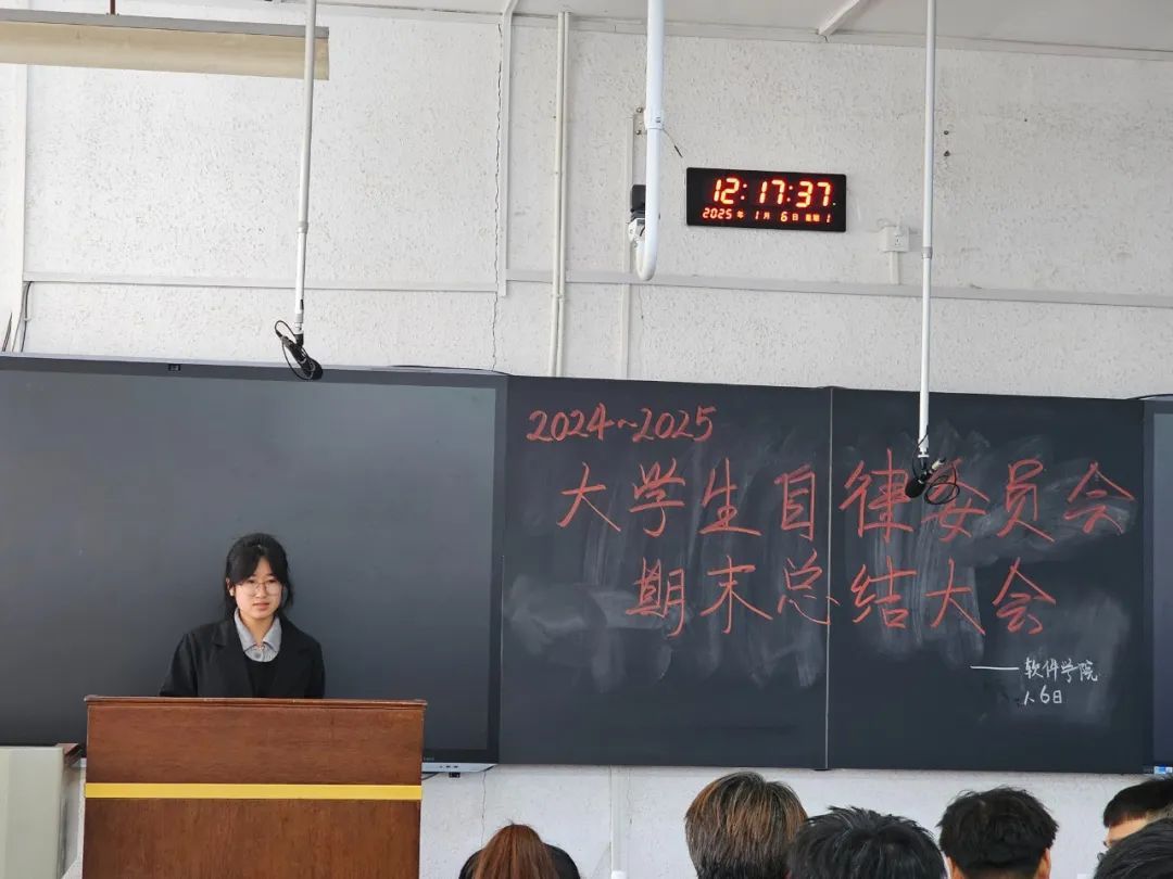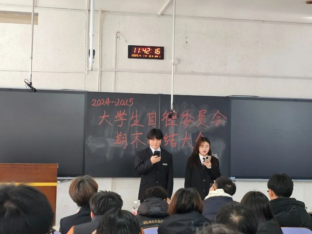 大会伊始,两位主席率先上台发言。他们详细阐述了自委会在这一阶段的整体工作布局与方向,从规章制度的完善到各项活动的策划推进,都离不开他们的统筹协调。通过精准的数据与实例,展示了自委会在学风建设、宿舍管理等方面取得的显著成效,同时也对工作中的不足进行了深刻反思,并提出了切实可行的改进措施,为后续工作明确了目标与路径。