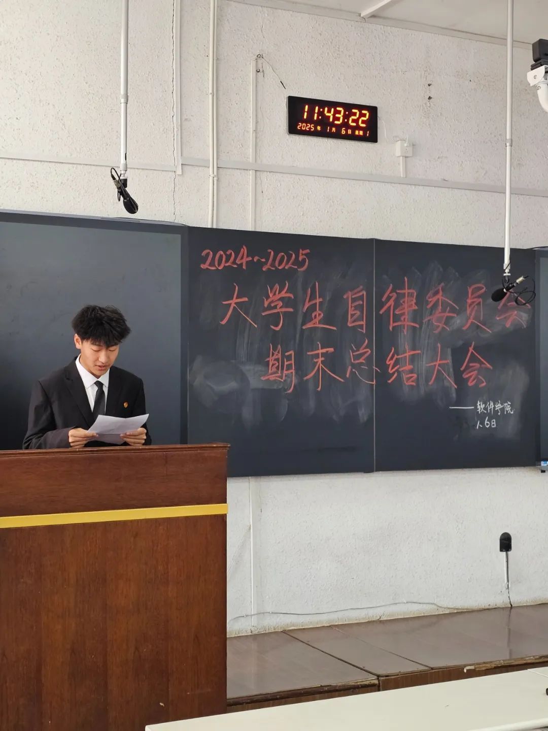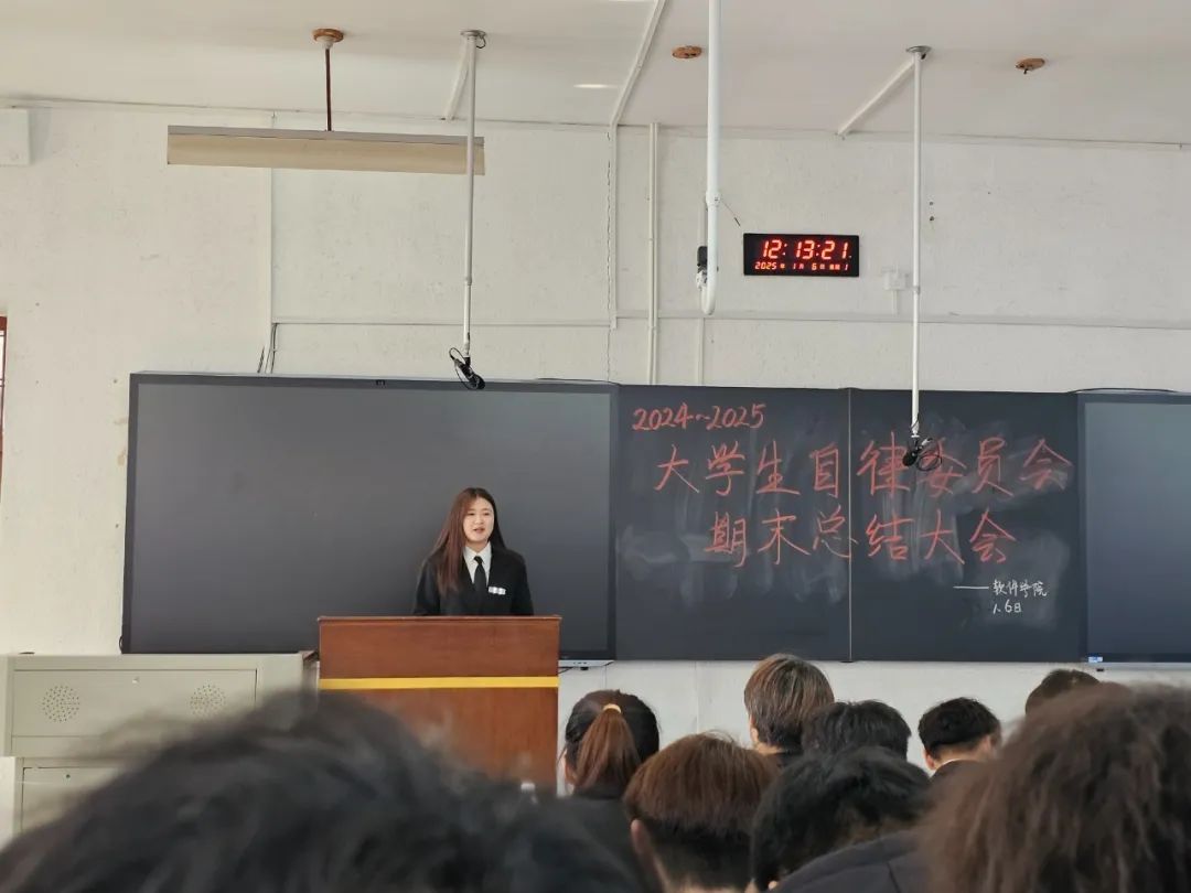 随后,各部门正部长依次上台讲话总结。回顾往昔,各部门部长凭借卓越的领导力和奉献精神,带领部员们攻克一个又一个难关,在查寝与活动组织等工作中取得显著成效,也让部员们在实践中得到了锻炼与成长。