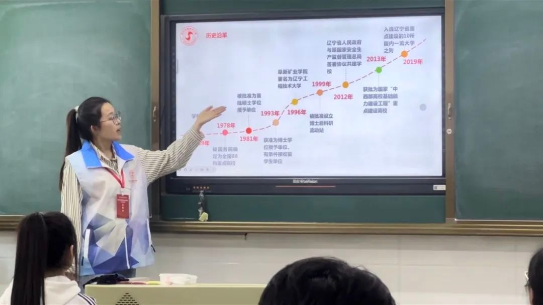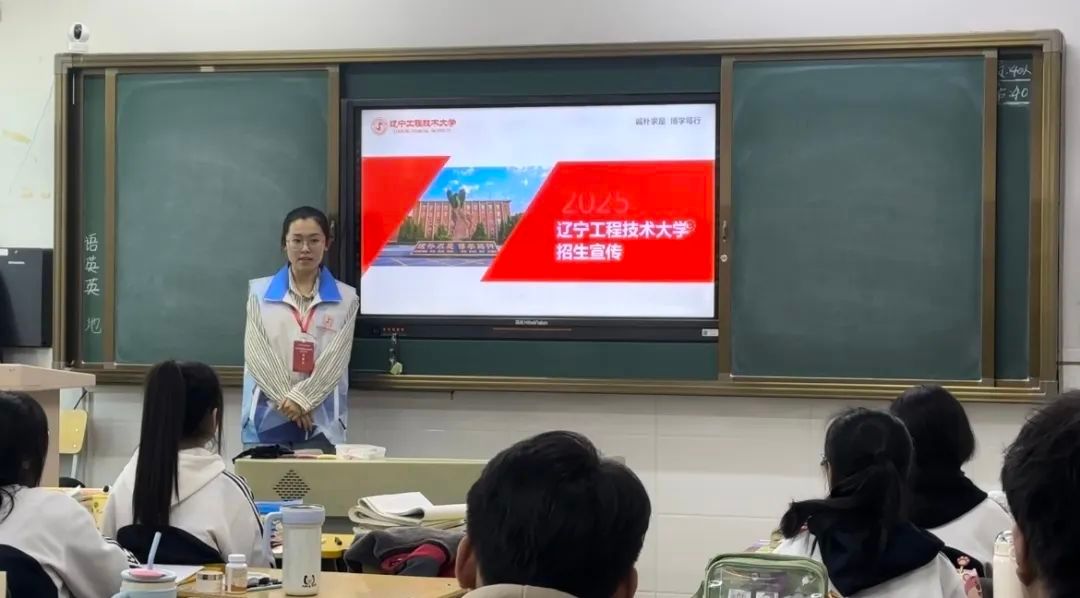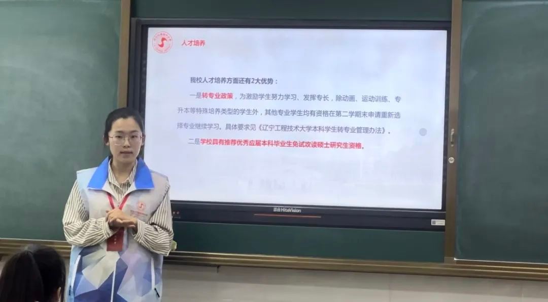 白林可为同学们准备了生动的宣讲和详尽的宣传材料,包括学校的招生简章、各专业介绍以及奖学金申请信息等。她在宣讲会上讲述了辽工程的基本情况、人才培养、校园文化和招生指南四个方面,并分享了自己在大学里的经历,深入浅出地讲述了学术挑战、社团活动、学生组织和丰富的校园生活,激发了在座同学对大学生活的向往和对学习的热情。