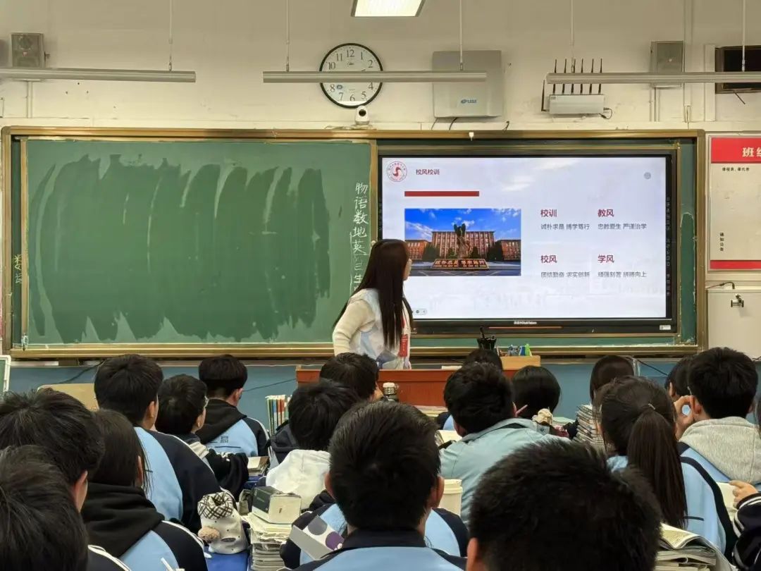 宣讲当天,杨霖同学凭借精心准备的精彩演讲与详尽的宣传资料,赢得了在场师生的高度关注。他详细介绍了学校的招生政策、人才培养理念、深厚的校园文化底蕴以及各专业特色,同时分享了个人在大学期间的成长故事与学习心得。