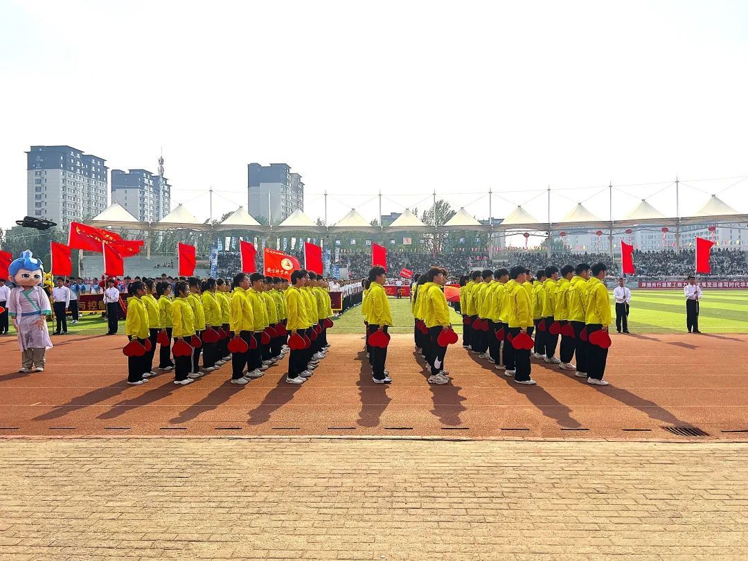 师生组成整齐方阵,呐喊助威、旗帜飘扬;赛场边,博彩游戏