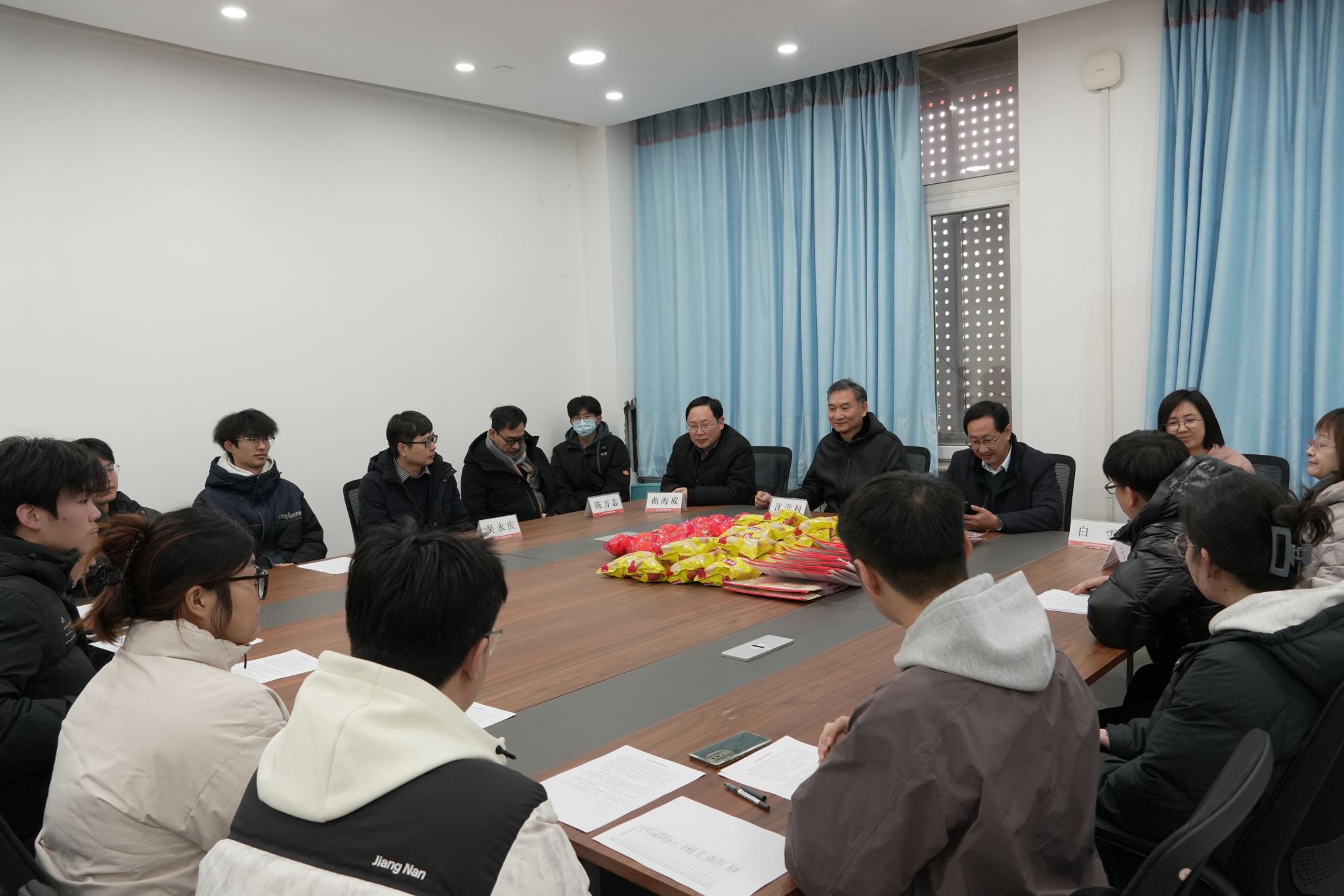 全力为大家保驾护航”。座谈最后,各位领导老师为2026届考研学生发放了精心准备的考研备品并为学生代表们送上了橙子以及乐事薯片祝福考研学子们心想事“橙”,心享“乐事”,考研必胜,一战成硕!