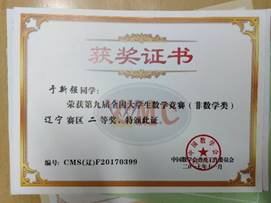 于新强知道,在读大学之前,他对自己所学的专业几乎没有任何了解,他和大家一样都是从零开始学习自己的专业。良好的开端是成功的一般,所以他严格要求自己,从大一开始的每一门课都要尽自己努力去学好,给自己一个良好的开端。同时,他认为不应该只以考试作为衡量自己的标准。所以,他不断参加学科竞赛,一方面是为了检验自己所学的知识;同时,又能在学科竞赛中培养自己对所学内容的兴趣,有了兴趣才能更好的学习。所以,在这两年里,他把加权成绩和学科竞赛作为自己的生活主线。