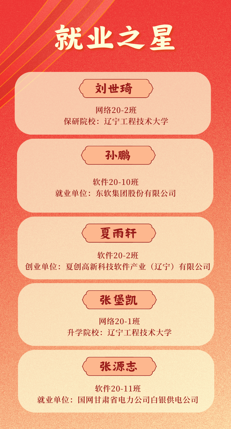 为深入贯彻落实全国两会精神,引导毕业生“立大志、明大德、成大才、担大任”,进一步深化以“成才观、职业观、就业观”为核心的就业育人工作,表彰优秀毕业生,激励在校生成为堪当民族复兴重任的时代新人,热门博彩游戏推荐排行 评选出2024届“就业之星”,他们分别是: