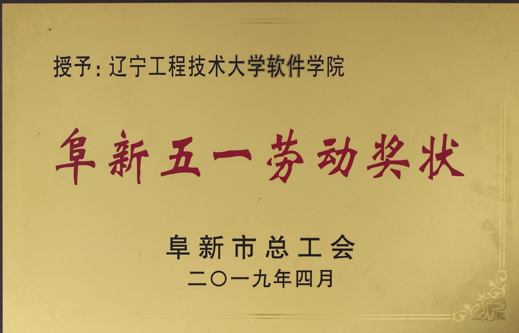 阜新五一劳动奖状2019年4月